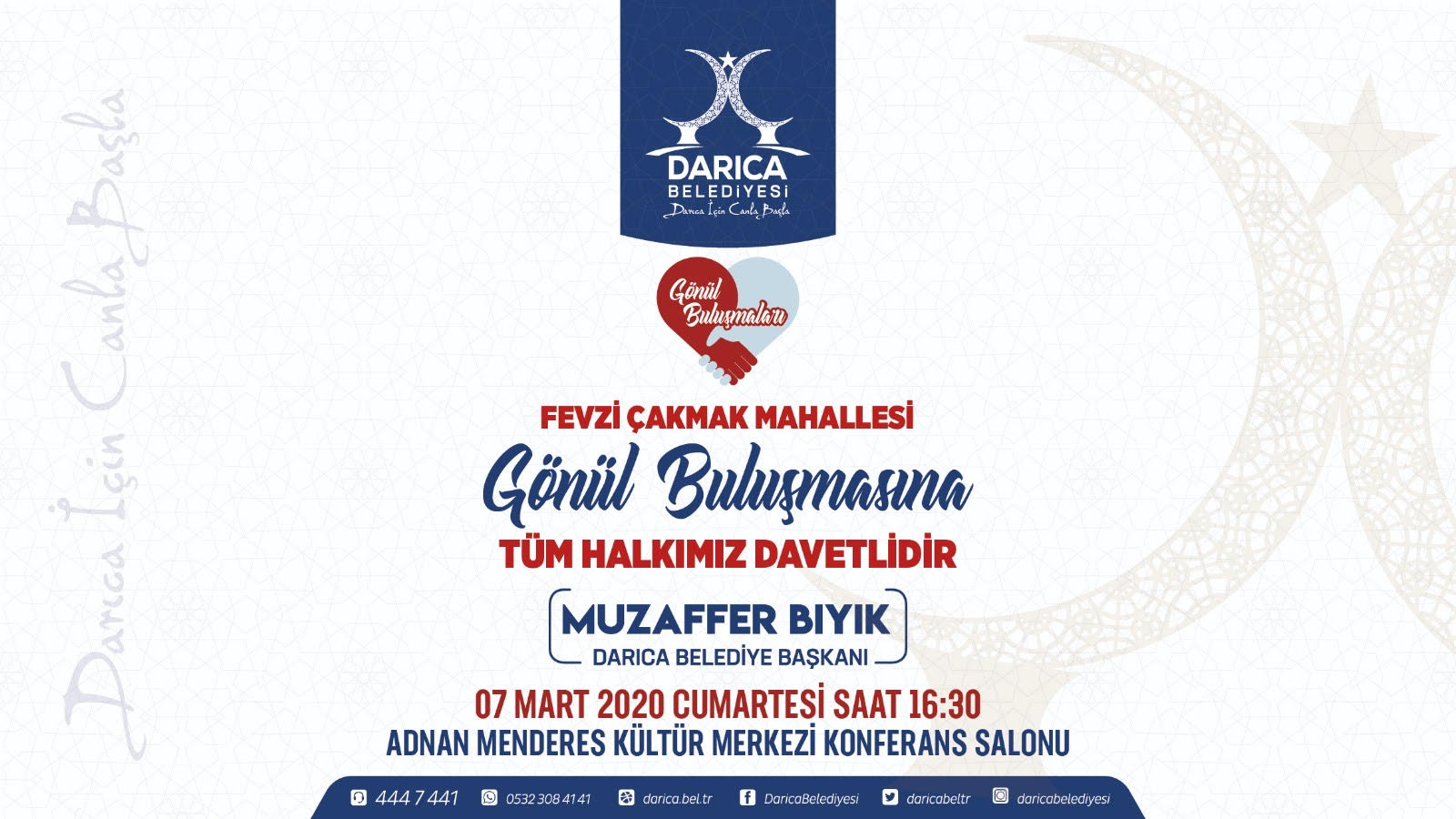 Fevzi Çakmak Mahallesi sakinlerini Gönül Buluşması programına davet eden Başkan Muzaffer Bıyık, “Cumhurbaşkanımızın bizden istemiş olduğu gönül belediyeciliğini Darıca’da hayata geçirmek için göreve geldiğimiz günden itibaren canla başla çalışıyoruz. Kapımız herkese açık, belediyeye gelen herkesle görüşüyoruz. Bunun yanında mahallelere giderek vatandaşlarımızla da birebir görüşüyoruz. Bu toplantılarda herkes beklentilerini bize iletiyor ve bizler de ekibimizle birlikte notlar alarak vatandaşlarımızın isteklerine göre projeler şekillendiriyoruz. Cumartesi günü Adnan Menderes Kültür Merkezi’nde onuncusunu gerçekleştireceğimiz Gönül Buluşması programımıza herkesi davet ediyorum.” diye konuştu.