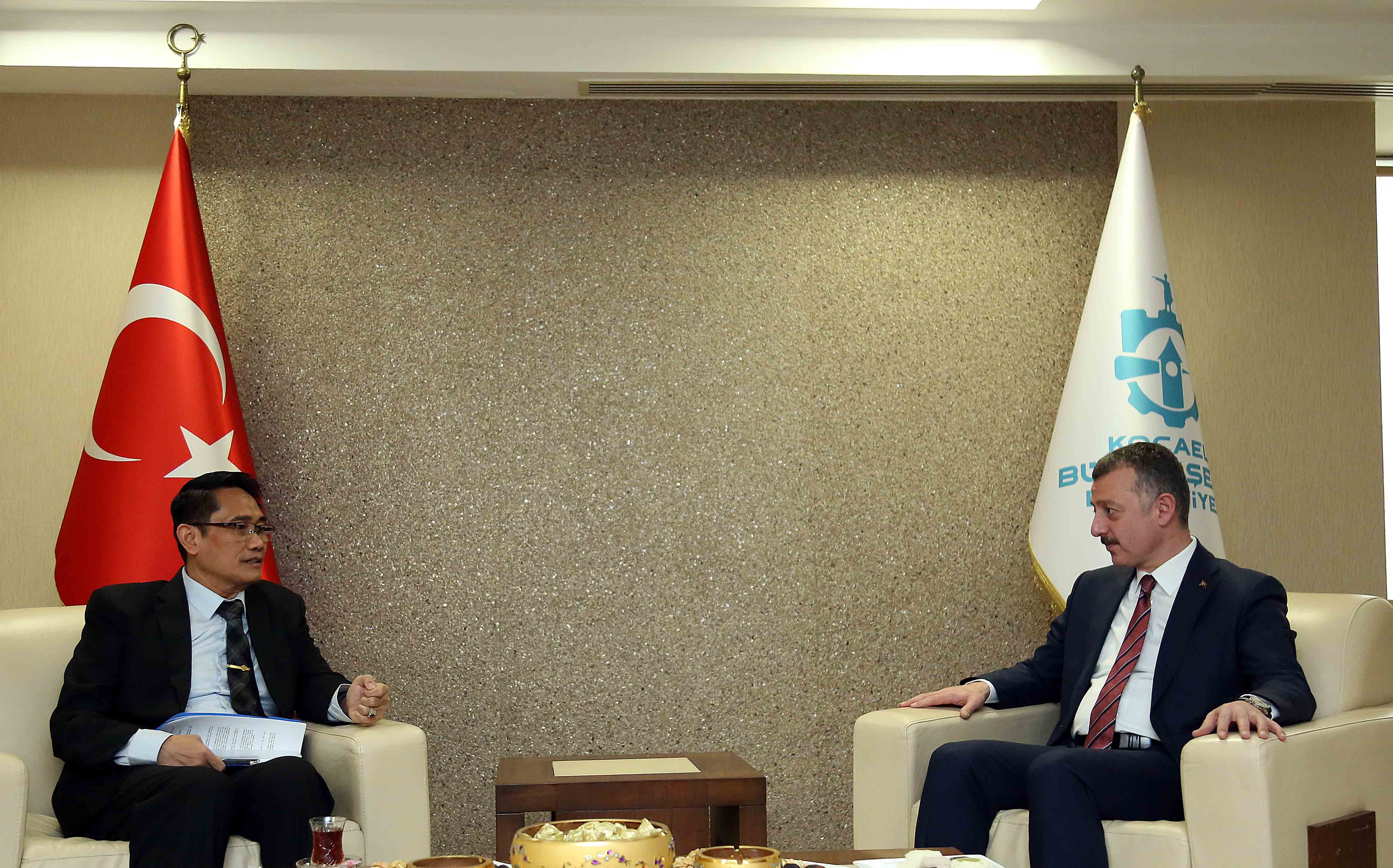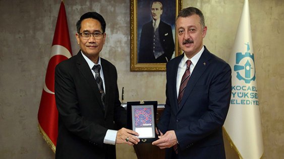 Marmara Belediyeler Birliği ve Kocaeli Büyükşehir Belediye Başkanı Doç. Dr. Tahir Büyükakın, Endonezya Cumhuriyeti İstanbul Başkonsolosu İmam Asari ve beraberindeki heyeti makamında konuk etti. İki ülke ilişkilerinden yerel ve uluslararası konuların konuşulduğu ziyarette Başkan Büyükakın, konuk Başkonsolosa Kocaeli hakkında bilgi verdi. Nazik ziyaretlerinden dolayı Başkonsolos Asari’ye ayrıca teşekkür eden Başkan Büyükakın’a, Büyükşehir Belediyesi Genel Sekreter Yardımcısı Dr. Hasan Aydınlık’ta eşlik etti. Ziyarette Türkiye ve Endonezya’nın BM, İslam İşbirliği Teşkilatı, G20, D-8 ve MIKTA gibi çok taraflı platformlarda işbirliği içinde çalışılmasının önemi de vurgulandı.