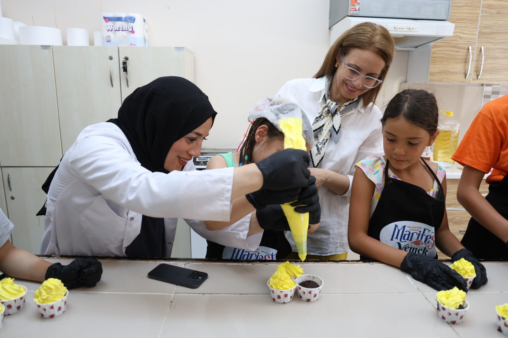 Kocaeli Büyükşehir Belediyesi Başkan Vekili Berna Abiş, KO-MEK’in Mehmet Ali Paşa Kurs Merkezi’ni ziyaret etti. Ev Becerileri ve Anne Çocuk Atölyeleri ile Yaz Kur’an-ı Kerim Kurslarında eğitim alan kursiyer ve çocuklarla yakından ilgilenen Başkan Vekili Abiş, ortaya çıkarılan birbirinden güzel el emeği göz nuru ürünlerin yapılışını izledi. Kursiyer ve çocuklarla sohbet eden Başkan Vekili Abiş, ziyaretin sonunda merkezde eğitim alan kursiyerlere aşure ikramında bulundu.