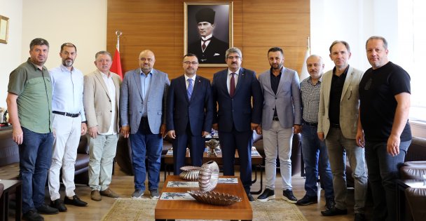 Hakimler ve Savcılar Kurulu’nun (HSK) yaz kararnamesi ile Kayseri’ye görevlendirilen Kocaeli Cumhuriyet Başsavcısı Habib Korkmaz, Kocaeli Ticaret Odası’na veda ziyareti gerçekleştirdi. KOTO Başkanı Necmi Bulut’un, Başkan Yardımcısı Hüseyin Gezer, Yönetim Kurulu Sayman Üyesi Mikail Kayacı, Yönetim Kurulu Üyeleri; Abdurrahman Çuhadar, Ömer Efe, Mehmet Akif Şen, Yusuf Ziya Uludüz, Yusuf Erenkaya ve Murat Barış ile birlikte ev sahipliği yaptığı ziyarette, Başsavcı Korkmaz, helallik isteyerek KOTO’ya veda etti. Başsavcı Korkmaz’a Kayseri mesaisinde başarılar dileyen Başkan Bulut, Kocaeli iş dünyası adına kente sunduğu katkılar dolayısıyla da teşekkür etti.