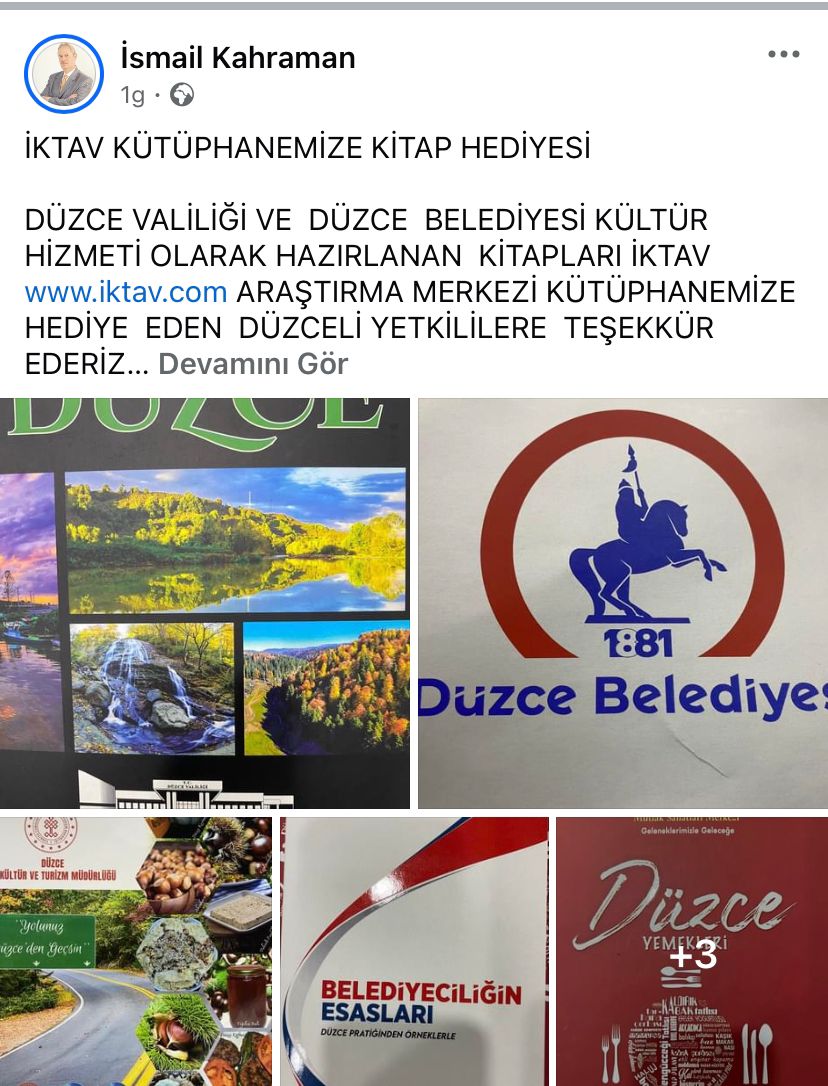 DÜZCE VALİLİĞİ VE DÜZCE BELEDİYESİ KÜLTÜR HİZMETİ OLARAK HAZIRLANAN KİTAPLARI İKTAV www.iktav.com ARAŞTIRMA MERKEZİ KÜTÜPHANEMİZE HEDİYE EDEN DÜZCELİ YETKİLİLERE TEŞEKKÜR EDERİZ.