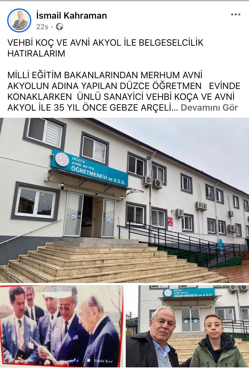 MİLLİ EĞİTİM BAKANLARINDAN MERHUM AVNİ AKYOL'UN ADINA YAPILAN DÜZCE ÖĞRETMEN EVİNDE KONAKLARKEN ÜNLÜ SANAYİCİ VEHBİ KOÇ'A VE AVNİ AKYOL İLE 35 YIL ÖNCE GEBZE ARÇELİK FABRİKASI'NDA YAŞADIĞIM GAZETECİLİK VE BELGESELCİLİK HATIRALARIM GÖZÜMÜN ÖNÜNE GELDİ.
