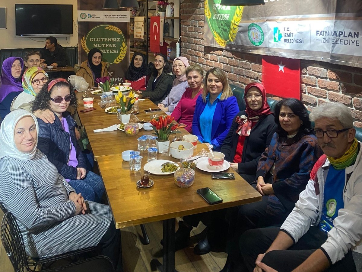 İzmit Belediyesi Sosyal Destek Hizmetleri Müdürlüğü, Çölyak ve PKU hastalığına dikkat çekmek ve hayatları boyunca özel beslenmeye tabii tutulan gruplara çeşitli glütensiz tarif önerilerinde bulunmak amacıyla her ay Çölyak ve PKU Yaşam Derneği iş birliğiyle Glütensiz Mutfak Atölyesi düzenliyor. Geçtiğimiz yıl başlayan ve vatandaşların yoğun ilgi gösterdiği atölye çerçevesinde bu ayın tarifi glütensiz tarhana çorbası oldu. Down Kafe’de düzenlenen Glütensiz Mutfak Atölyesi'ne İzmit Belediye Başkan Yardımcısı Sibel Solakoğlu, İnsan Kaynakları Müdürü Sevtap Cengiz ile Sosyal Destek Hizmetleri Müdürü Yasemin Gözkonan Kahveci katıldı. Ayrıca Çölyak ve PKU Yaşam Derneği üyelerinin ev yapımı glütensiz ürünlerinin bulunduğu stant açılarak dernek yararına bağış toplandı.