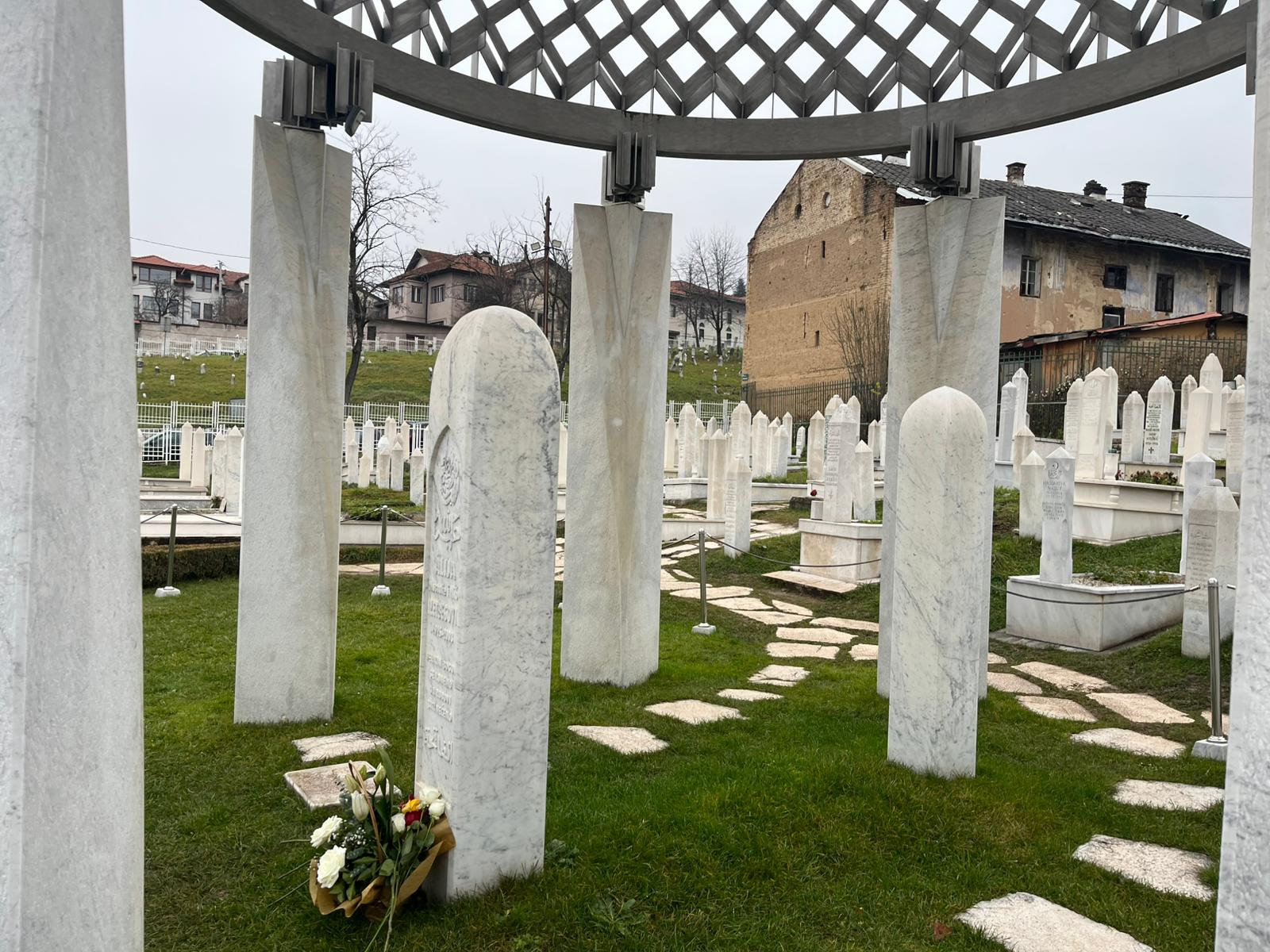 Kovaçi Mezarlığı, sade beyaz mermer taşlarla donatılmış mezarları, sessizliği ve çevresindeki yeşil örtüsüyle oldukça etkileyici bir atmosfer sunuyor. Mezarlığın en dikkat çeken bölümü ise Bosna-Hersek’in ilk cumhurbaşkanı Aliya İzzetbegoviç’in kabri. Mütevazı bir mermer taşın altında yatan bu büyük liderin mezarı, her gün hem yerel halk hem de dünyanın dört bir yanından gelen Müslüman ziyaretçiler tarafından dua edilerek anılıyor. Mezar taşının başında yer alan “Bizim davamız bir zafer değil, bir şahlanıştır” sözü, ziyaretçilerin kalbinde derin yankı buluyor.