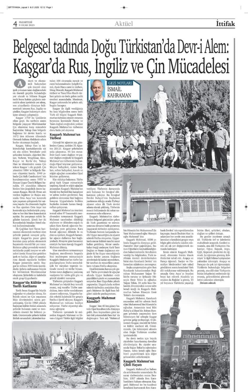 Yaygın ve bölgesel bir çok gazete ve dergide İlim kültür tarih araştırmaları merkezi www.iktav.com olarak hazırladığımız araştırma yazıları İle çalışan gazeteciler günümü yaşıyor İstanbul ittifak Gazetesin de yayınlanan Doğu Türkistan da devri alem yazımı paylaşıyorum