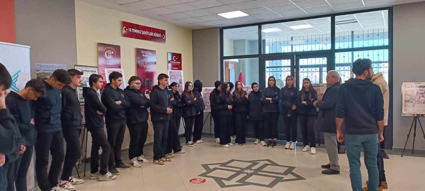 Asrın felaketi olarak kabul edilen 6 Şubat depremlerinin yıldönümünde yine bir deprem şehidi olan merhum Alaettin Kurt’un da adının verildiği okulumuzda deprem şehitlerimizin anılması amacıyla gerçekleştirilen saygı duruşu ,sergi ve belgesel gösteriminin ardından deprem şehitlerimiz için dualar da edildi.