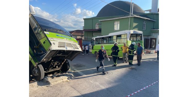 Geri gitmeye başlayan ve sürücüsünün kontrol edemediği midibüs, Hüseyin Nalbant'ın kullandığı 41 J 0237 plakalı midibüse çarptıktan sonra yol kenarındaki binanın bahçesine devrildi.