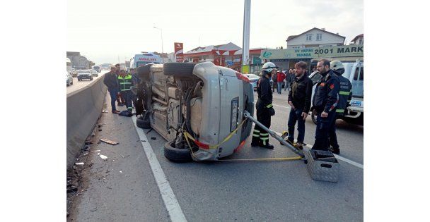 H.D. yönetimindeki 54 LC 006 plakalı otomobil, D-130 kara yolu İzmit istikametine seyrederken Çiftlik Mahallesi mevkisinde beton refüje çarparak devrildi.