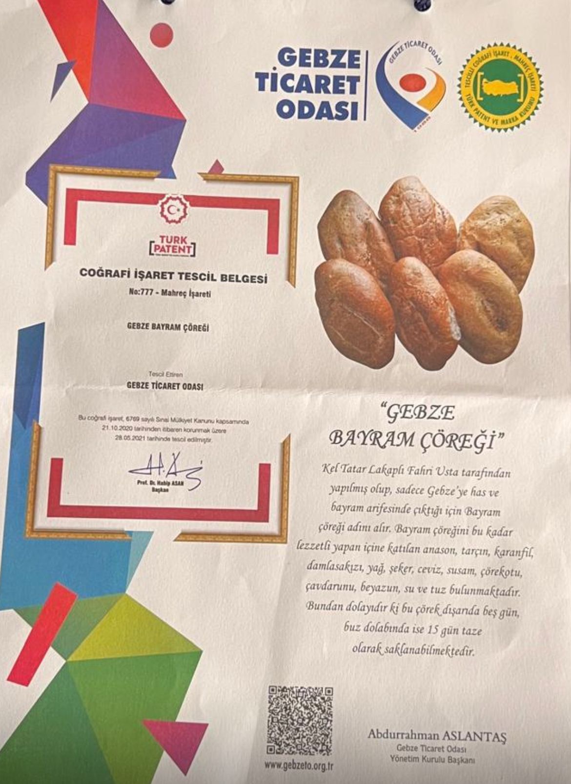 Gebze'nin tescilli tek coğrafi işaretli marka Değeri “Gebze Bayram Çöreği“ GTO tarafından ramazan bayramı dolayısı ile Gebze tarihi Çoban Mustafapaşa Külliyesi'nde dağıtıldı.GTO başkanın Abdurrahman ASLANTAŞ www.gebzegazetesi.com CANLI yayında bilgi verdi.