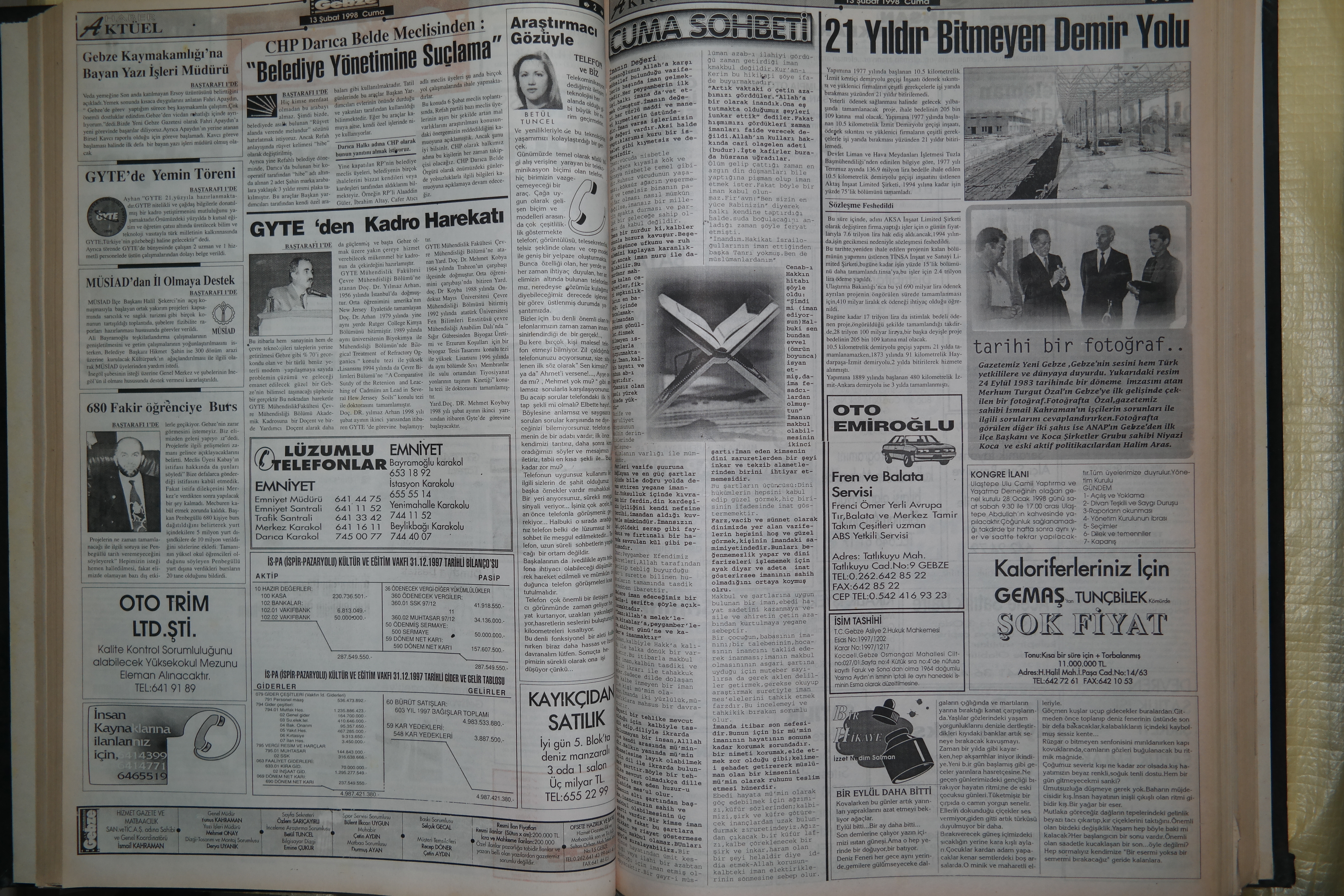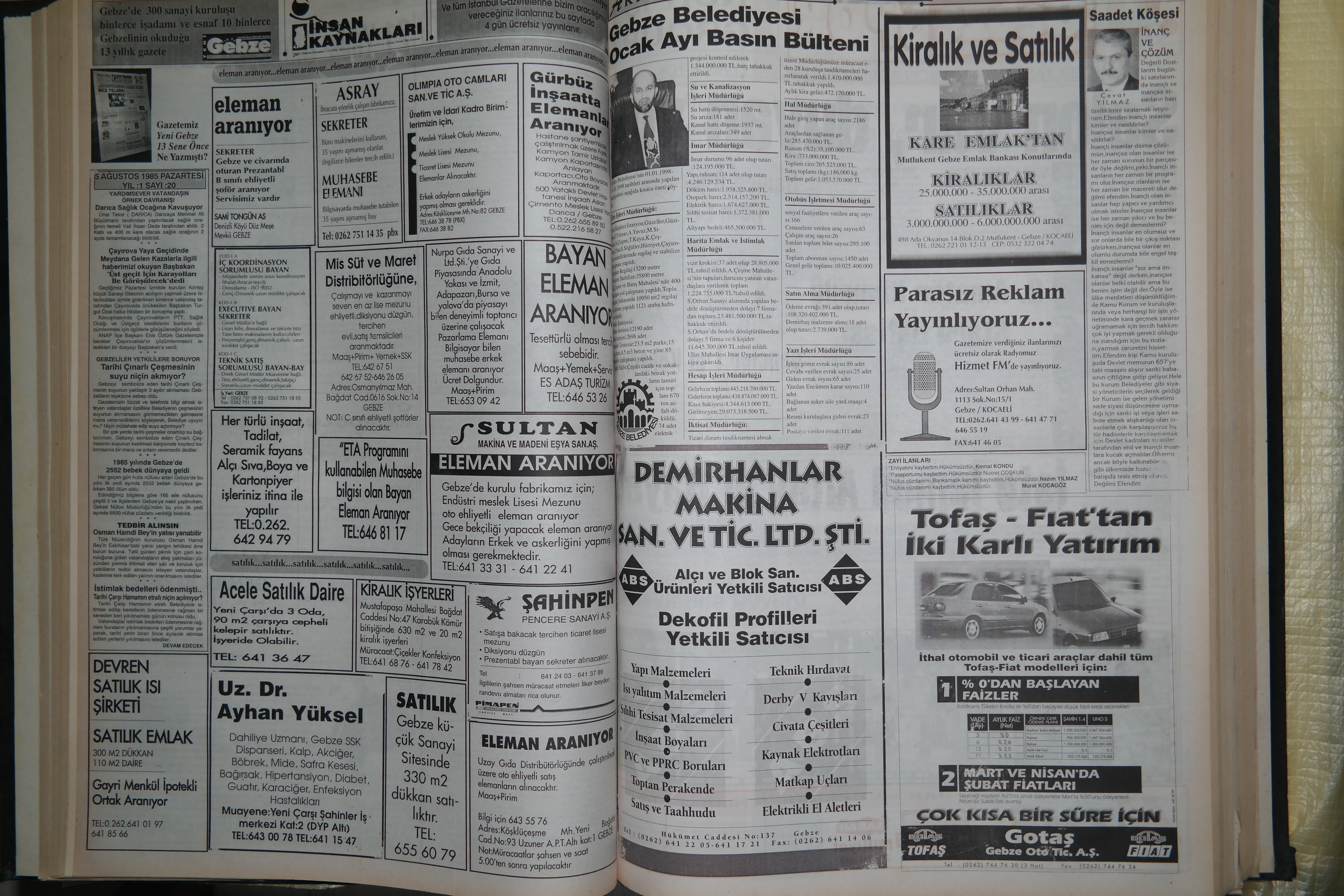 25 Mart 1985 tarihinde kurduğumuz gazetemizin kuruluş hikâyesinden sizlere bahsetmek istiyorum. Gebze’de tek bir gazete vardı. Elde dizilip basılan, Uyanış Gazetesi vardı. Çok seslilik olması gerektiğine inanarak arayışlara girdik. Gazetecilik mesleğinin içerisinden gelen eski belediye başkanı merhum Bülent Atasayan ile görüştük, toplantılar yaptık, ardından başka görüşmelerimiz oldu ama başarısız kaldı. Buna rağmen kesinlikle Gebze’de gazete çıkartılmasına inanıyorduk, yaşım 25‘di. Gebze’de gazete basacak matbaa yoktu. İzmit’e gittik. Çok zor şartlar vardı. Bazen sabahlardık, kurşunlarla diziliyordu başlıklar, elde toplanıyordu, klişe imkanları… Ama büyük zevkti. Bazen uykusuz kalsak da, kağıt balyalarının üzerinde uyusak da, bazen aç kalsak da keyifliydi. Kamyonlarla İzmit’e gidip geliyorduk çünkü servis imkanı yoktu. Her hafta bazen üç kez gidip gelmek suretiyle 2 seneye yakın İzmit’te basarak gazeteyi yayınlayıp, dağıtımını yaptık. Gebze’ye ilk matbaayı kurduğumuzda da çok büyük keyif almıştık.