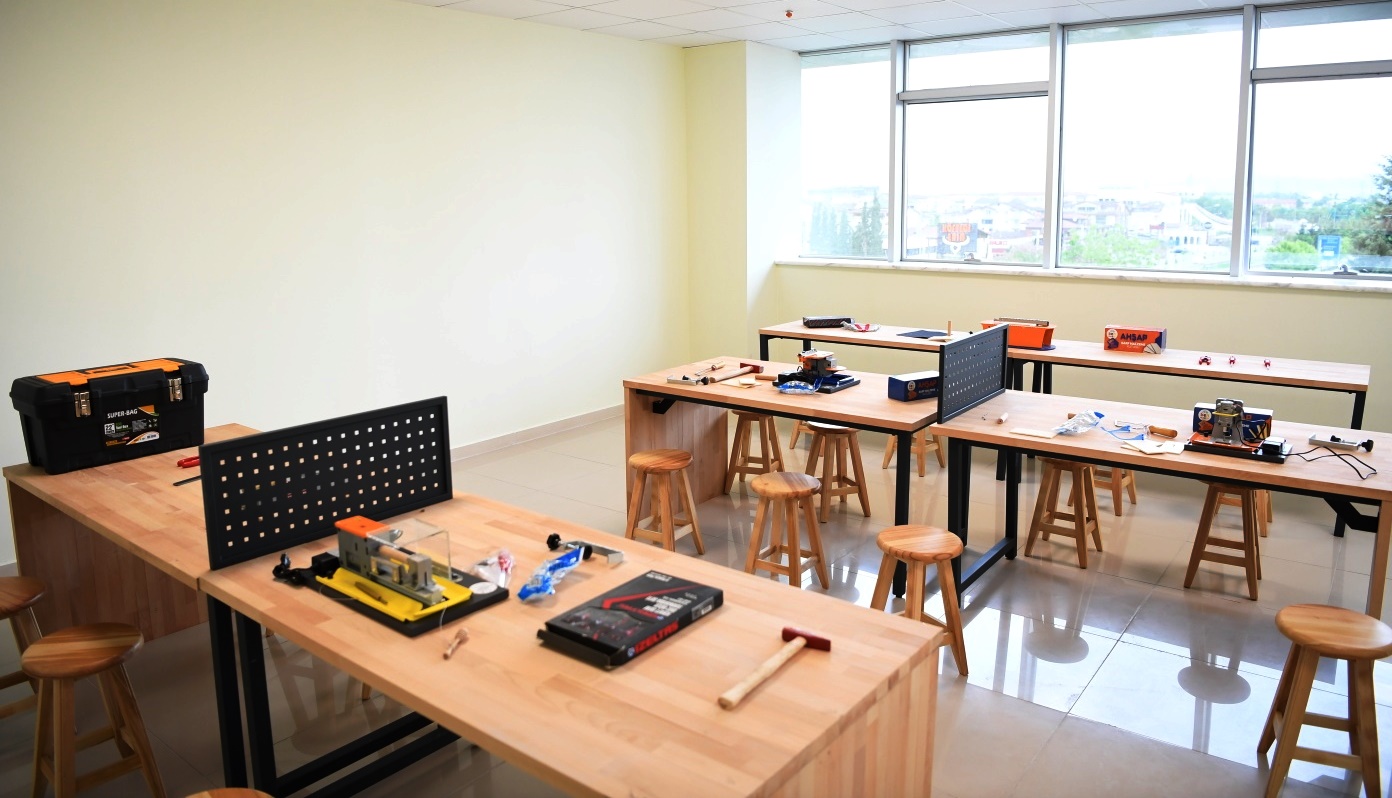AHŞAP – Kartepe Belediye Başkanı Av.M.Mustafa Kocaman, Türk tarihinde önemli bir yeri olan ahşap çalışmalar için hazırlanan sınıfta bilgi alırken, kullanılacak olan ekipmanları inceledi.