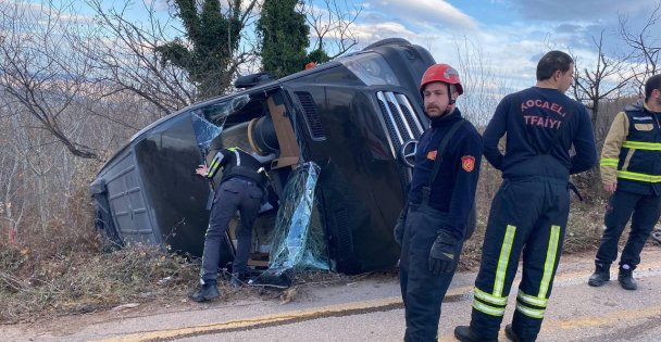 Kocaeli’ye geziye gelen 12 kişinin içerisinde bulunduğu minibüs sürücüsünün kontrolünden çıkarak devrildi. Kazada 7 kişi yaralandı.