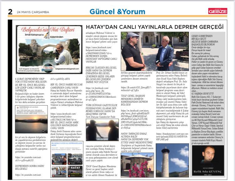 Gebze gazetesi www.gebzegazetesi.com ve www.gazetegebze.com.tr ile belgeselcininnotdefterinde 24 Mayıs 2023 de yayınlanan makalemiz