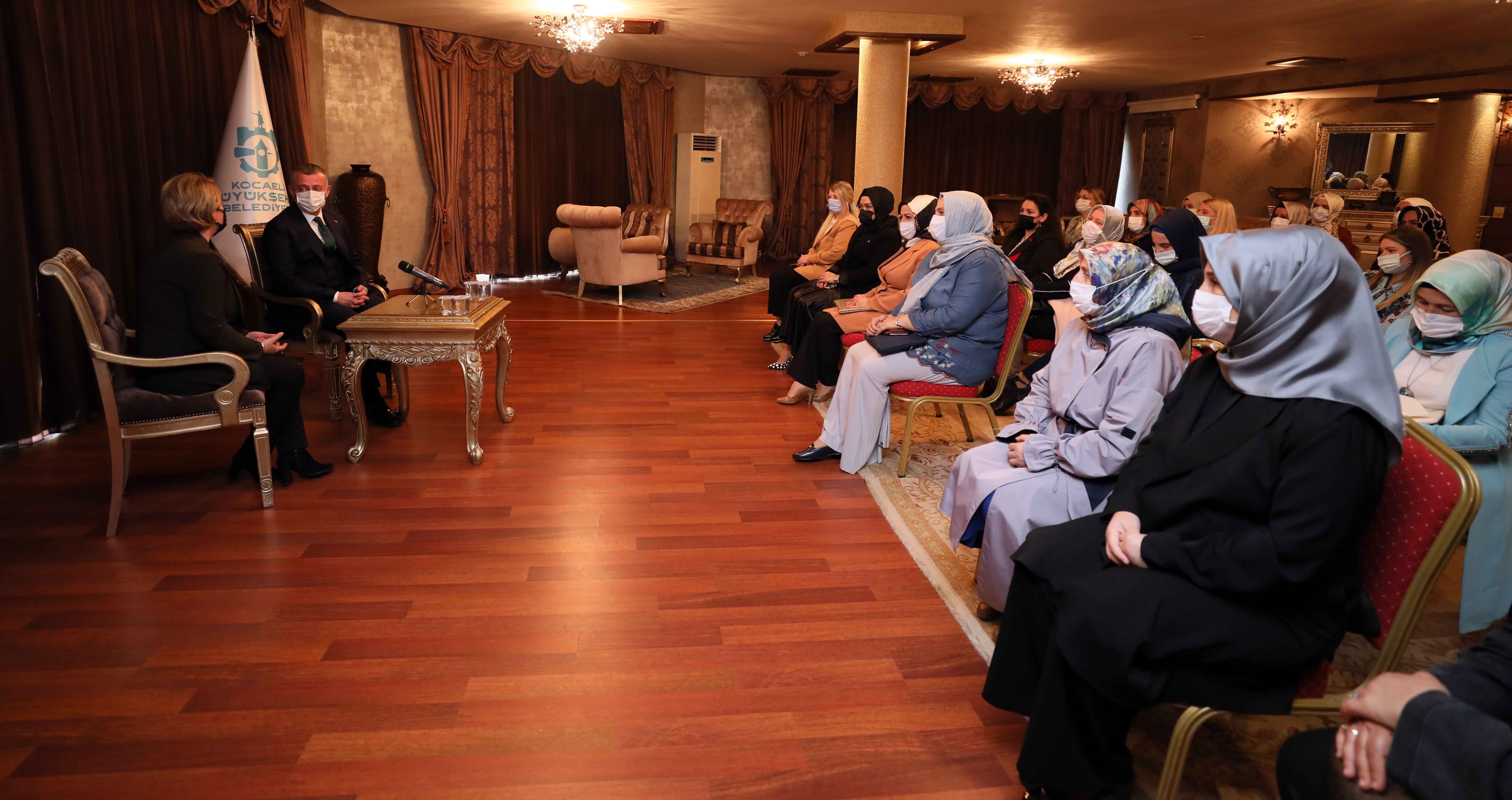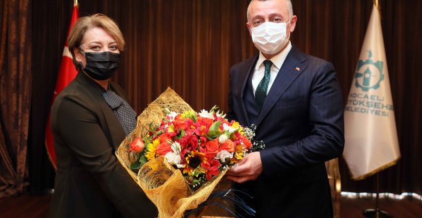Marmara Belediyeler Birliği ve Kocaeli Büyükşehir Belediye Başkanı Doç.Dr Tahir Büyükakın, AK Parti Kocaeli İl Kadın Kolları Başkanı Yasemin Özdemir ve yönetimini makamında konuk etti. Nazik ziyaretleri için İl Kadın Kolları yönetimine teşekkür eden Başkan Büyükakın, “Siyasete incelik ve üretkenlik katan, kapı kapı dolaşarak davamızı anlatan, yeri geldiğinde seçim sandığına sahip çıkan kadınlarımızın hakkını ödeyemeyiz” dedi. Birliktelikte görüş alışverişi yapılırken kendilerini kabul ederek konukseverliğinden dolayı Başkan Büyükakın’a teşekkür eden Özdemir, “Kademeli normalleşmenin ardından sahaya yeniden indik. Şehrimizin her noktasına kadın kolları olarak yeniden ulaşacağız. Davamızla birlikte ortaya koyulan tüm hizmetlerimizi bir kez daha kadirşinas vatandaşımıza anlatacağız.” ifadelerini sarf etti.