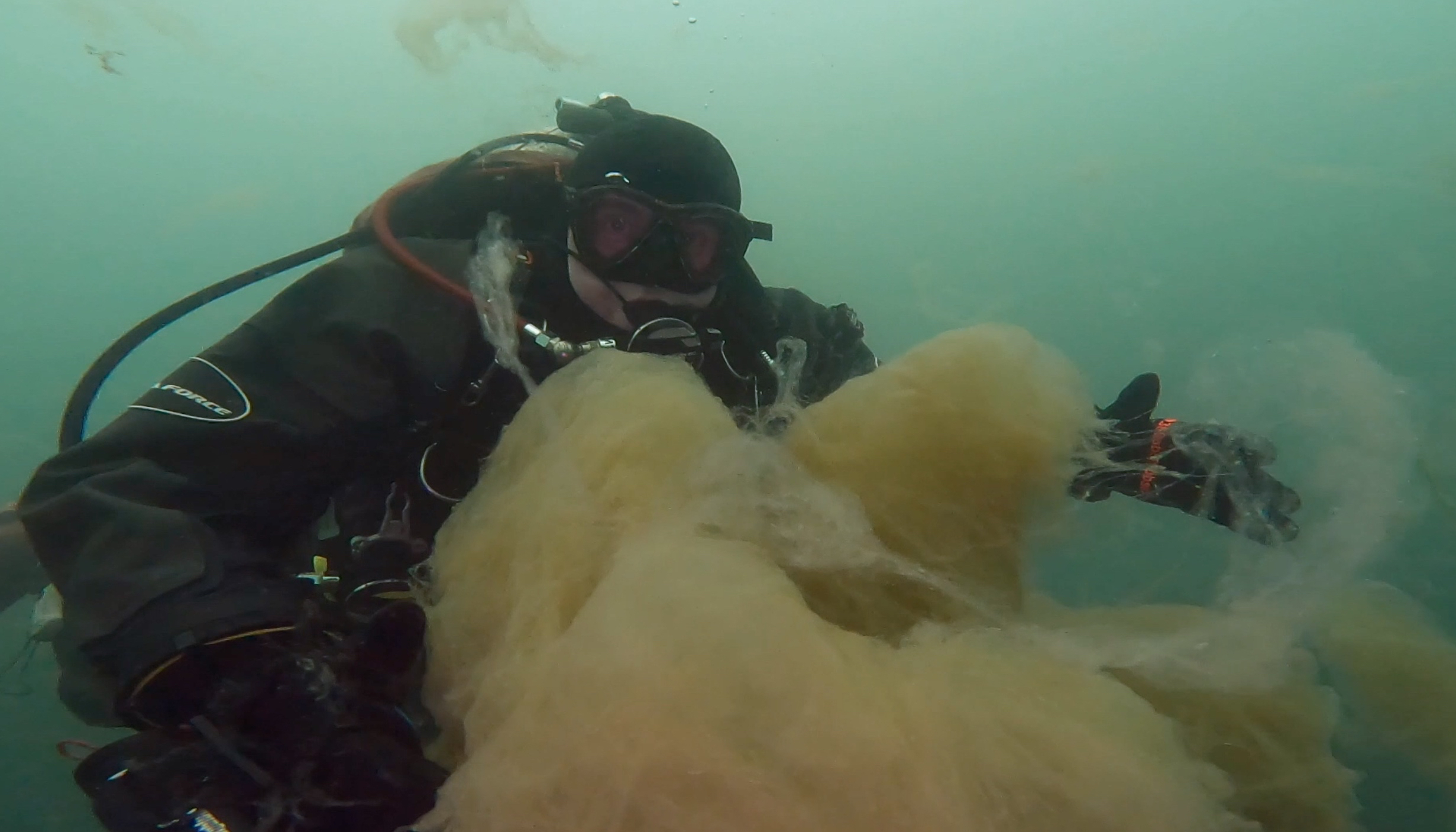 Deniz yüzeyinden dağılsa da 19 metre derinliğe kadar örümcek ağını andıran yapısıyla suda askıda kalan müsilaj, dalgıçlara sıra dışı deneyim yaşatıyor.
