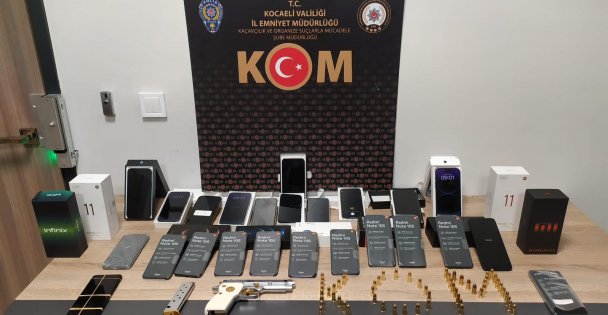 Adreslerde yapılan aramada, 31 gümrük kaçağı cep telefonu, tabanca, 103 fişek, şarjör, IMEI kopyalamada kullanılan 3 hard disk, 3 flash bellek ile 2 SIM kart bulundu.