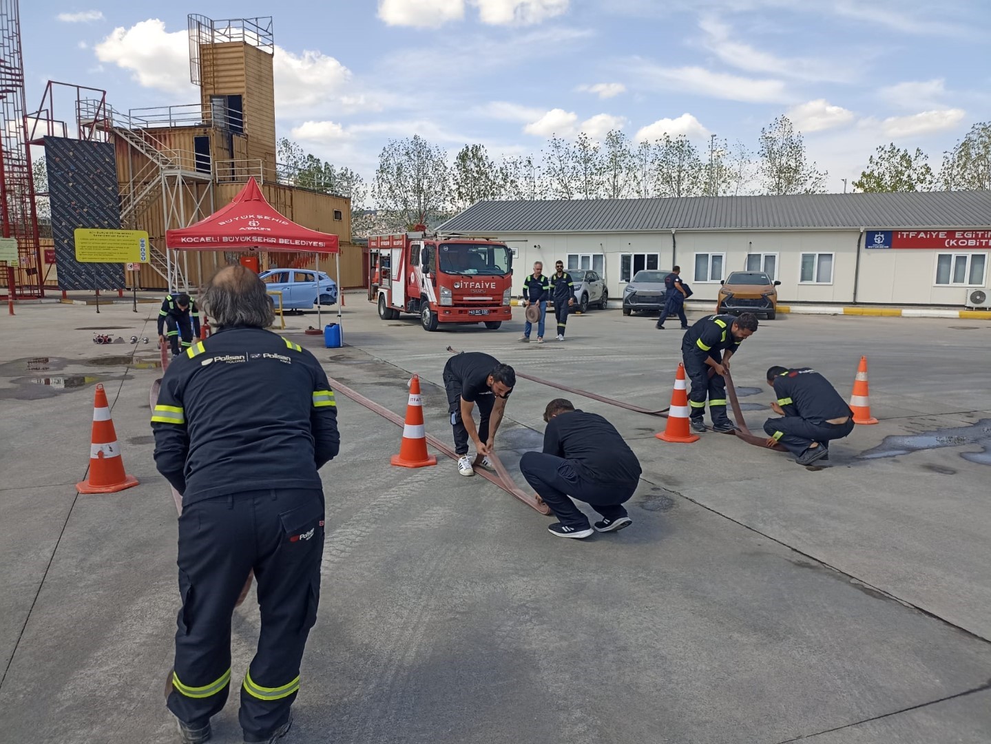 Büyükşehir İtfaiyesi Önleme ve Eğitim Şube Müdürlüğü Eğitim Birimi (KOBİTEM) personelince verilen eğitimde, simülatörler vasıtasıyla muhtemel bir akaryakıt yangınına yaklaşma ve köpükle söndürme uygulamaları gerçekleştirildi.
