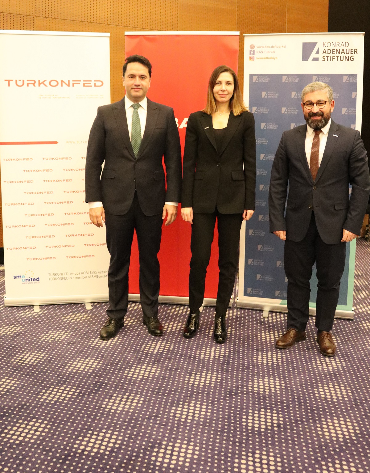 24 Şubat 2022 / Kocaeli – Türkiye’nin en büyük bağımsız ve gönüllü iş dünyası örgütü Türk Girişim ve İş Dünyası Konfederasyonu (TÜRKONFED), 120’yi aşkın ülkede faaliyetlerini sürdüren Konrad-Adenauer-Stiftung (KAS) iş birliği, Akbank’ın desteğiyle hayata geçirilen "KOBİ’ler için Yeşil Dönüşüm Projesi” Kocaeli’nde başladı. Doğu Marmara Sanayi ve İş Dünyası Federasyonu (DOĞUMARSİFED) ev sahipliğinde gerçekleşen etkinliğin açılışına; TÜRKONFED Finansmana Erişim Komisyonu Başkanı Kaan Kiziroğlu, Akbank KOBİ Bankacılığı Pazarlama Müdürü Cemre Bozer, KAS Türkiye Temsilciliği Proje Yöneticisi Bekir Öncel, Kocaeli Sanayi Odası ve İktisadi Kalkınma Vakfı Başkanı Ayhan Zeytinoğlu ve DOĞUMARSİFED Yönetim Kurulu Başkanı Atalay Kaya katılım gösterdi.