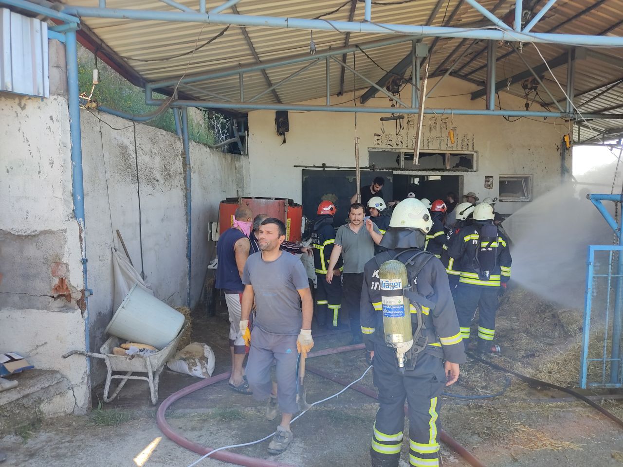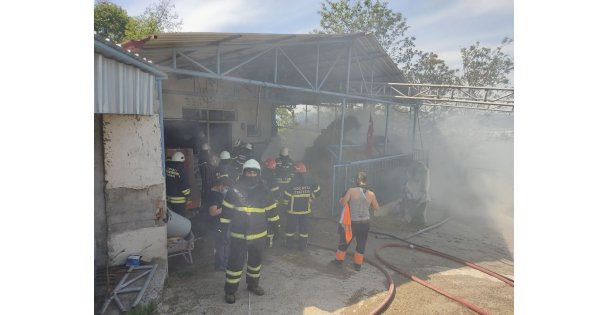 Değirmendere Mahallesi Yukarıköy mevkisinde bir besi çiftliğinin samanlık kısmında yangın çıktı.