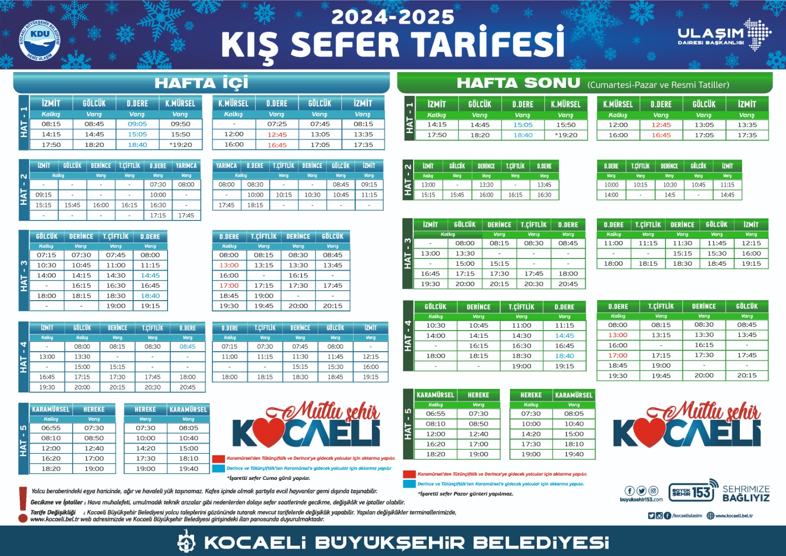 Deniz Ulaşım Şube Müdürlüğü, hem İzmit Körfezi’ne komşu tüm ilçelere sefer yapılması hem de mevcut sefer sayılarının artırılması için filoya 1 yolcu motoru daha kattı. Böylelikle İzmit Körfezi’nde yolcu motoru sayısı 6’ya çıkarılmış oldu. Yeni yolcu motoruyla birlikte günlük toplam 88 olan sefer sayısı 96’ya ulaştı. Deniz ulaşımında ilk seferler 06.50’de Hereke, 07.15’de Değirmendere, 07.25 Değirmendere ve 07.15’te Gölcük’ten başlıyor. Kış sezonu akşam 21.00’de, yaz sezonu ise 23.00’de sona eriyor.