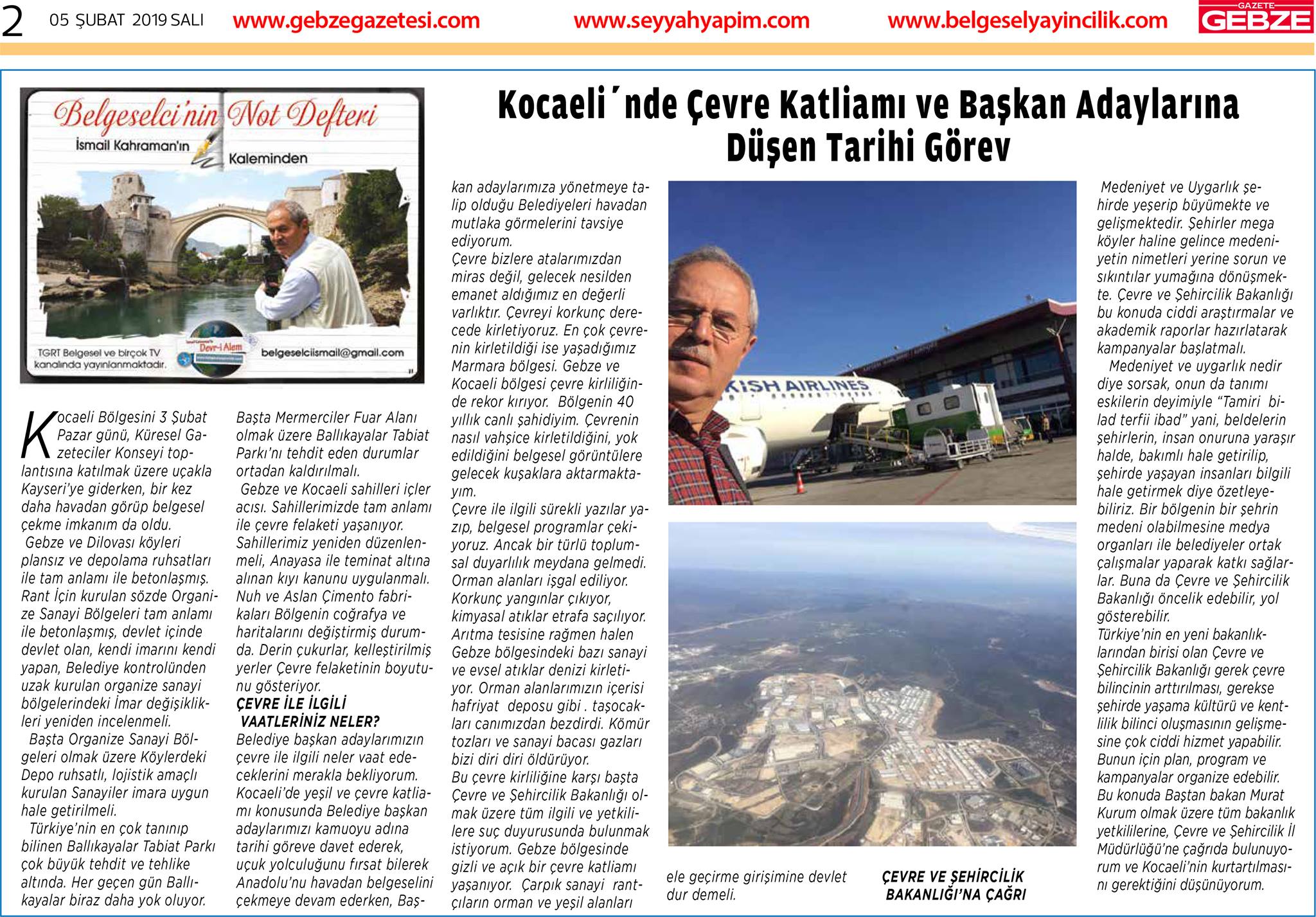 Kocaeli Bölgesini 3 Şubat Pazar günü, Küresel Gazeteciler Konseyi toplantısına katılmak üzere uçakla Kayseri’ye giderken, bir kez daha havadan görüp belgesel çekme imkanım da oldu.