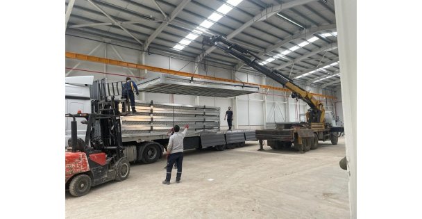 Körfez Belediyesi'nin Darıca ve Dilovası Belediyeleri ile birlikte Kahramanmaraş’ta kuracağı konteyner kent için hazır olan konteynerler bölgeye sevk ediliyor.