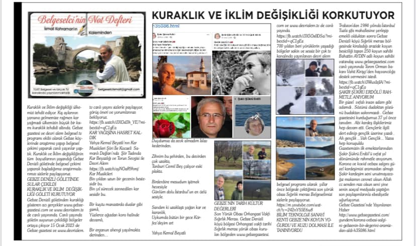 Gebze gazetesi www.gebzegazetesi.com ve www.gazetegebze.com.tr ile belgeselcinin not defterinde yayınlanan 17 Ocak 2022 tarihinde yayınlanan makalemiz