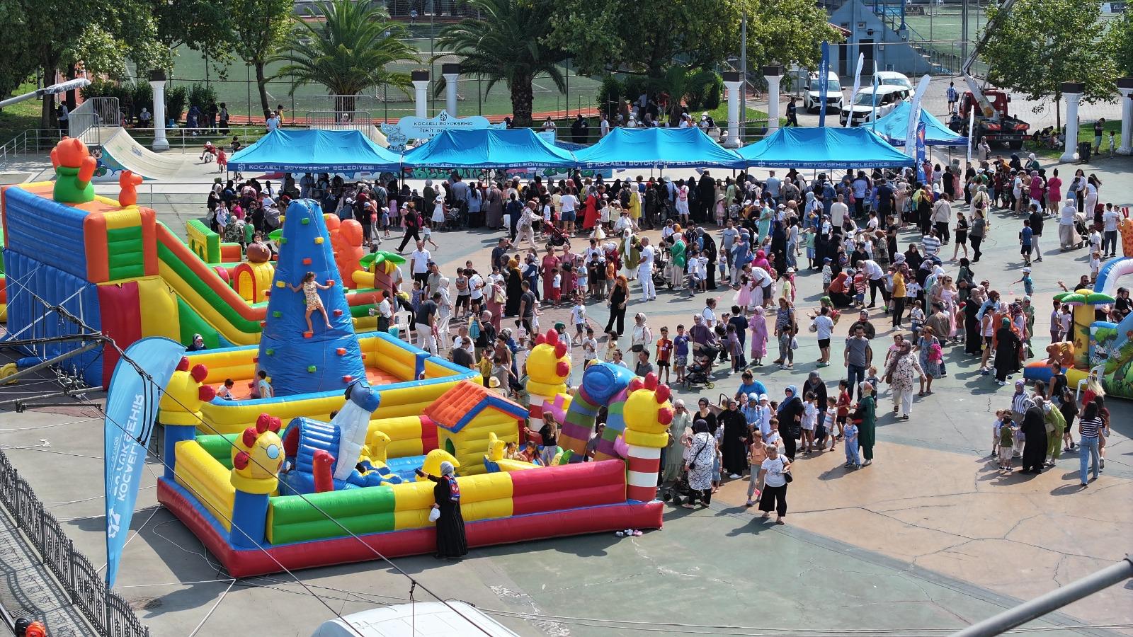 Kocaeli Büyükşehir Belediyesi Kadın ve Aile Hizmetleri Dairesi Başkanlığı’na bağlı Çocuk Hizmetleri Şube Müdürlüğü bünyesinde İzmit Doğukışla Parkı’nda kurulan Lokomotif Çocuk Köyü’nde mezuniyet heyecanı yaşandı. Bu kapsamda çocuklar için Doğu Kışla Parkı içerisine oyun alanları ve atölyeler kuruldu. Çocuklar, mezuniyet töreni öncesinde aileleriyle birlikte etkinlik alanına gelerek, gün boyu çeşitli oyunlar ve atölye çalışmalarıyla keyifli vakit geçirdi.