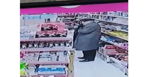 Derince ilçesinde bir iş yerine giren yaşlı adam, raflarda gözüne kestirdiği matkabı çalarak, paltosunun cebine koydu. Dükkandan çıkacağı zaman iş yeri sahibine yakalanan yaşlı adam yakayı ele verdi. O anlar saniye saniye kameralara yansıdı.