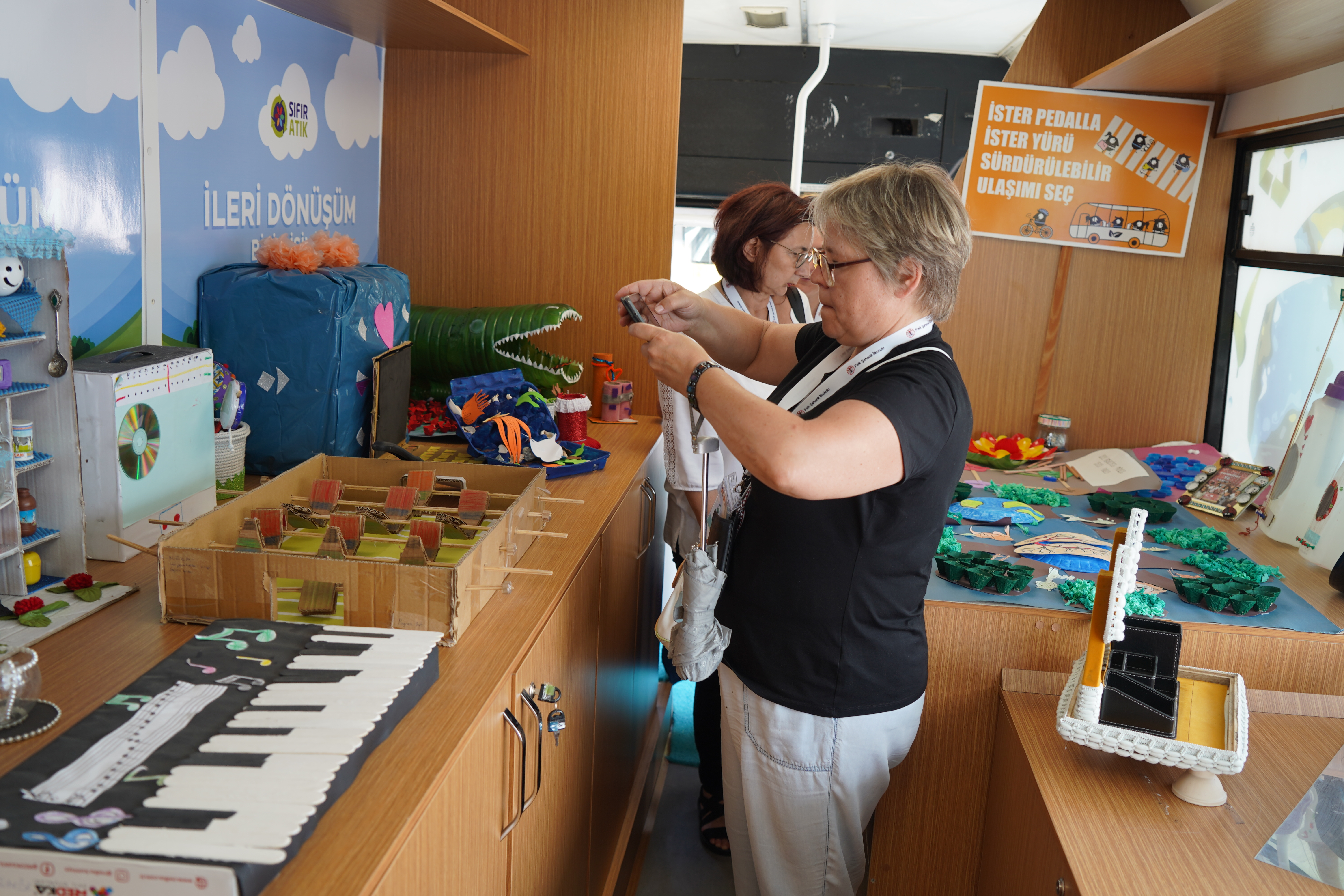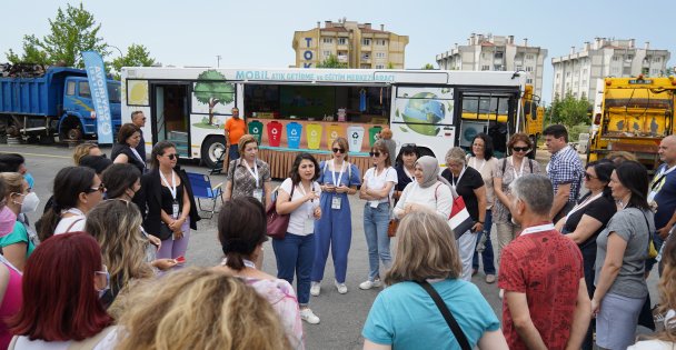 Yurt dışından gelen 50 kişilik bir heyet Çayırova Belediyesi Mobil Atık Getirme ve Gezici Eğitim aracını gezdi, yetkililerden bilgiler aldı.