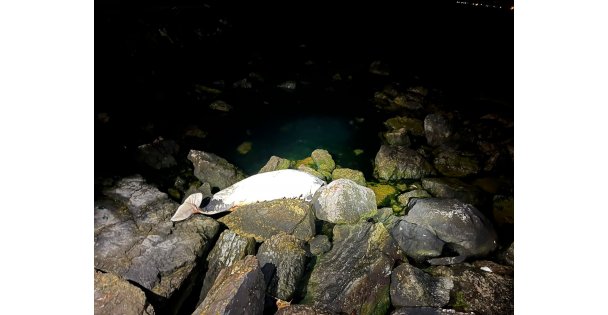 Edinilen bilgiye göre, Bayramoğlu Mahallesi’nde bulunan Balyanoz Koyu'nda devriye gezen Darıca Belediyesi güvenlik ekipleri ve bekçiler, sahile ölü yunus balığı vurduğunu fark etti. Kayaların üzerinde hareketsiz yatan yunusun, karın bölgesinde kesik olduğu ve incelenmek üzere barınağa götürüleceği öğrenildi.