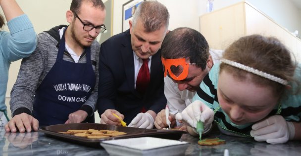 GÖLMEK yemek kursu eğitim alan Down sendromlu bireyler, eğitimlere devam ettikleri Şirinköy Kurs merkezinde Gölcük Belediye Başkanı Ali Yıldırım Sezer’i konuk ettiler. Kursiyerlerle birlikte mutfağa giren Başkan Sezer’e eşi Türkan Sezer, AK Parti İlçe Başkanı Çetin Seymen ve eşi Ayşe Seymen eşlik etti. Özel bireylerle birlikte rengarenk pasta yapan Başkan Sezer, “Yol Arkadaşım” dediği bireylerin mutfaktaki eğlenceli anlarına ortak oldu.