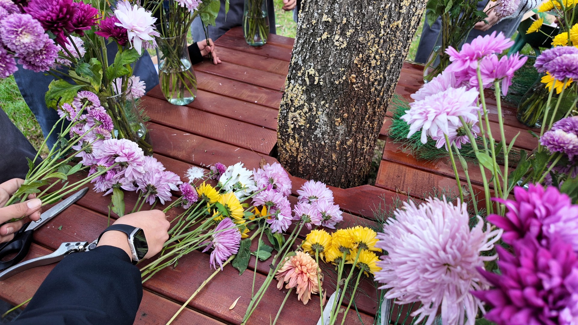 Workshop kapsamında öğrencilere çiçekçilik mesleğinin temel malzemeleri ve kullanım teknikleri tanıtıldı. Ders sırasında kesme çiçekler, yeşillikler, tanzim kapları, çiçek makası, teller, kurdele, rafya, krepon kâğıdı gibi pek çok araç ve materyalin işlevi anlatıldı. Öğrenciler bu malzemeleri yakından tanıyarak kendi buket tasarımlarını uygulama fırsatı buldu. Bu kapsamda atölyede öğrenciler, birbirinden farklı kokulara sahip çiçekleri sevdiklerine hediye etmek için özenle hazırladı. Kimi öğrenciler eğitim sonunda yaptığı buketi annesine götürmeyi tercih ederken, kimileri ise öğretmenlerine hediye etmek için kendi tasarımlarını hazırladı.