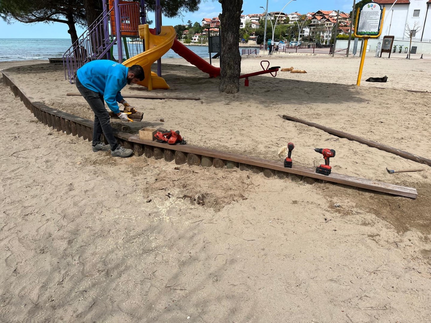 Vatandaşların sahillerde aileleriyle oturup dinlendikleri sosyal donatı alanlarını yenileyen ekipler, halkın güvenli ve sorunsuz bir yaz dönemi geçirmesini amaçlıyor. Bu bağlamda çürümüş ipek halat ve dubalar ile tahrip olmuş ahşapları yenileyen ekipler, plajlardaki iskelelerin bakımlarını yaparak daha kullanışlı hale getirdi. İskelelerdeki kayık çekek yerlerinin bozuk alanlarını onarımdan geçiren ekipler, sahillerde bulunan bisiklet ve yürüyüş yollarının çizgilerini de yeniledi.