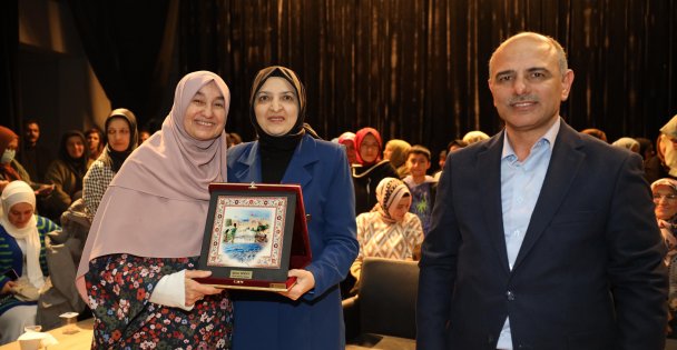 Programın sonunda Körfez Belediye Başkanı Şener Söğüt, Saliha Erdim'e plaket takdim etti.