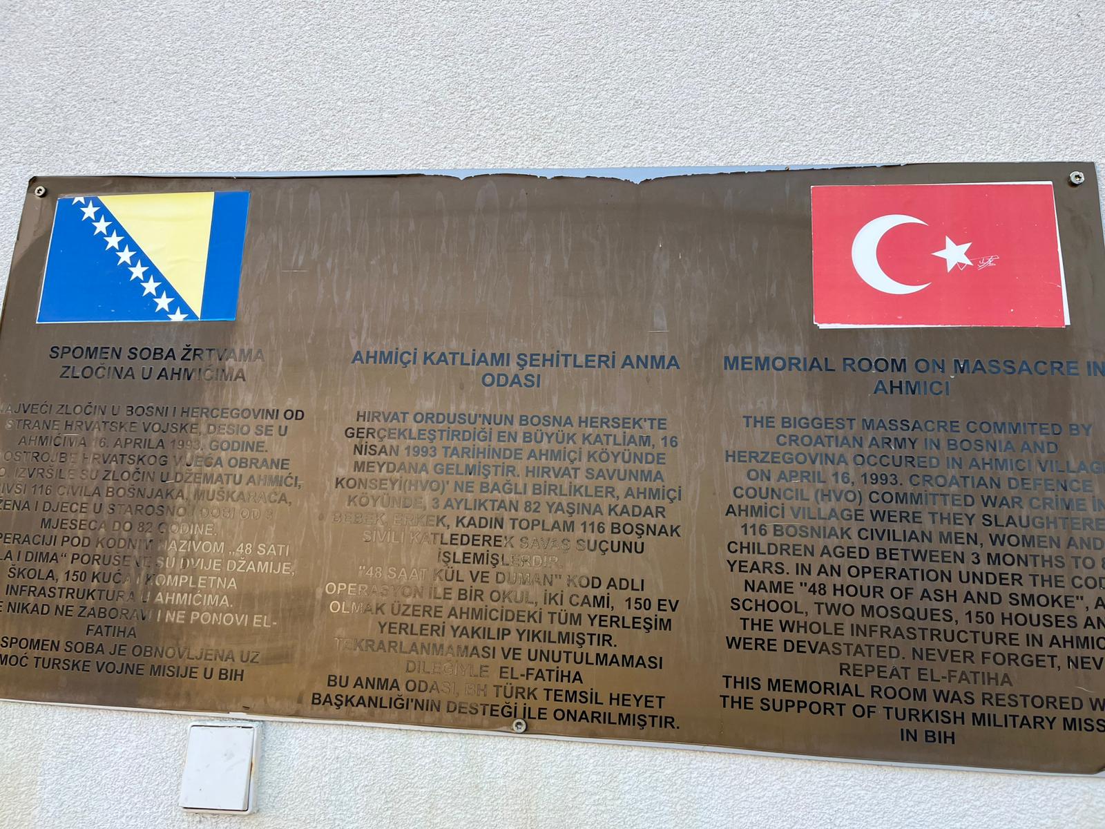 Bosna'daki savaşta, Hırvat askerler 16 Nisan 1993'te sabah ezanında Ahmiçi köyünü basarak 32'si kadın, 11'i çocuk 116 Boşnak sivili katletti. Ahmiçi’de katledilenler arasında daha sonra yanmış bedeni fırından çıkarılan 3 aylık bir bebek de bulunuyordu.