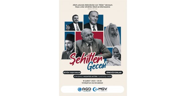 ‘Şehadet bir çağrıdır, nesillere çağlara’ temasının ön plana çıkarılacağı etkinlikte, İlahiyatçı-Yazar Muzaffer AKTÜRK konuşmacı olarak katılacak. Programda ayrıca; Kur’an-ı Kerim tilaveti, sinevizyon gösterisi, AGD Ortaokul Komisyonundan Büyük Yaşayanlar gösterisi, şiir ve dualar yer alacak.