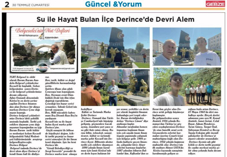 TGRT Belgesel tv ekibi olarak Buram Buram Anadolu Belgesel çekimlerine Kocaeli’de başladık. Gebze bölgesinden sonra Derince’de belgesel çekimlerimize devam ediyoruz.