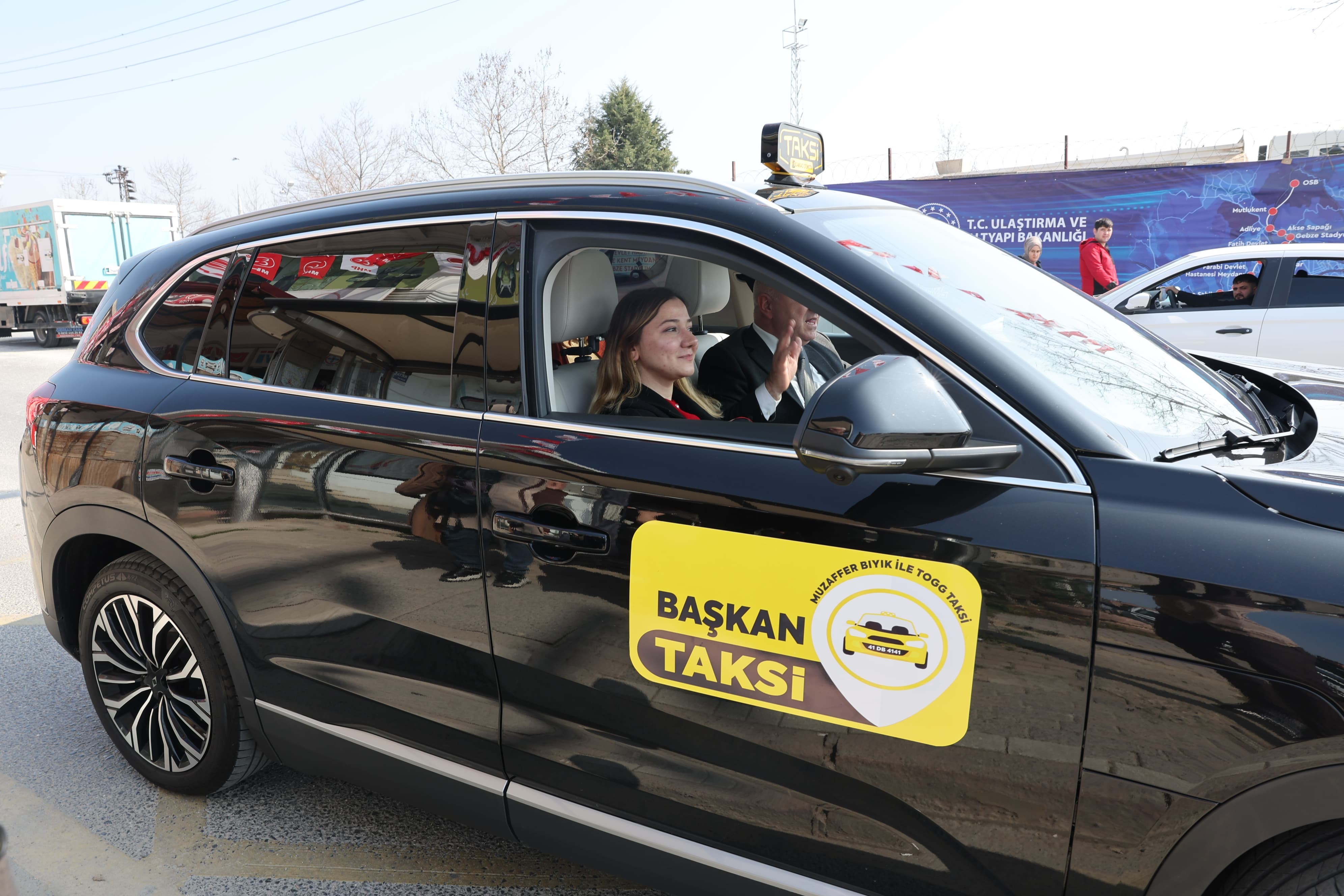 Taksi bekleyen vatandaşların yanına Togg ile giden Bıyık'ı görenler şaşkınlıklarını gizleyemedi.