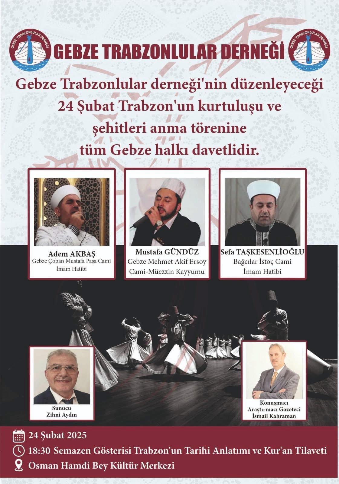 Trabzon’un düşman işgalinden kurtuluşunun yıl dönümü ve şehitleri anma etkinliğinde an itibari ile semazen gösterisi www.gebzegazetesi.com da canlı yayınlanıyor