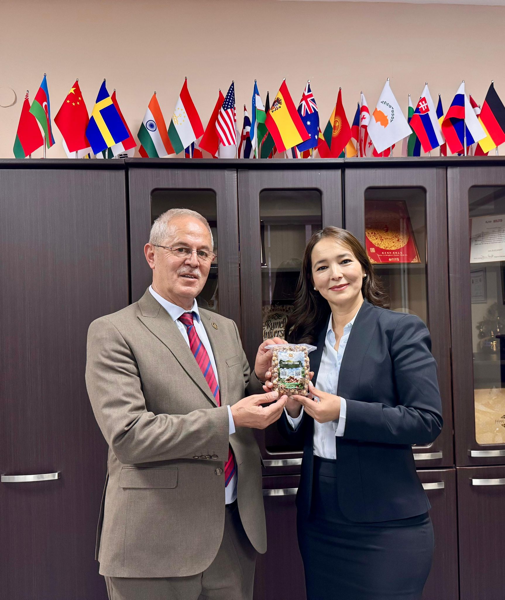 BİR DĞNYA MARKASI GİRESUN FINDIĞINI ÖZEL PAKET İÇERSİNDE KAZAKİSTAN VE KIRGIZİSTAN DA BİR ÇOK KİŞİ VE KUFUKUŞ TENSİLCİSİNE GIRESUN FINFIĞI HEDİYE ETTİK.