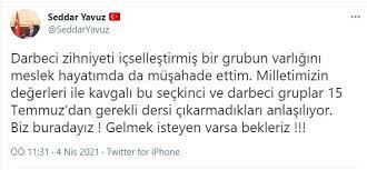 103 emekli amirale Bildiriye ilk tepki gösterenlerden biri de Kocaeli Valisi Seddar Yavuz oldu. Vali Yavuz sosyal medya hesabı üzerinden bildiriyi hedef alarak “Biz buradayız! Gelmek isteyen varsa bekleriz” ifadelerini kullanarak tepkisini gösterdi.