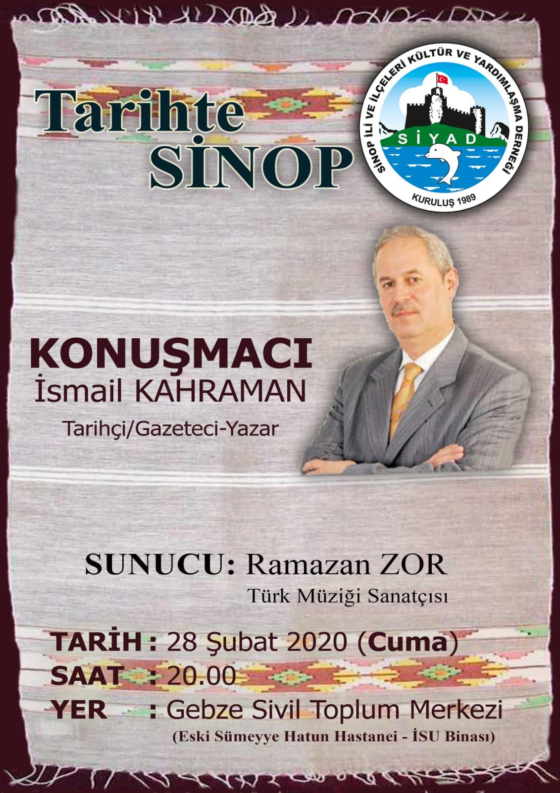 Gebze Sinoplular Kültür Derneği tarafından düzenlenen “Tarihte Sinop” konferansında belgesel görüntülerle Sinop tarihi anlatıldı