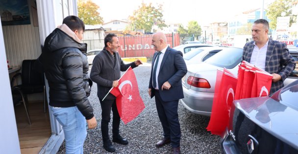 Darıca Belediyesi, 29 Ekim Cumhuriyet Bayramı için hazırlıklarını sürdürüyor. Cumhuriyet Bayramı’nda her yerde Türk Bayrağı asılması için 10 binin üzerinde bayrak dağıtacak olan Darıca Belediyesi, kentteki bütün esnaflara ay yıldızlı Türk bayrağı dağıtıyor. Darıca Belediye Başkanı Muzaffer Bıyık da Nenehatun Battalgazi Caddesi’nde esnaf ve vatandaşlara Türk bayrağı dağıtırken Cumhuriyet Bayramı’nın 99’uncu yılının Darıca’da coşkulu bir şekilde kutlanması için tüm hazırlıkların sürdüğünü söyledi.