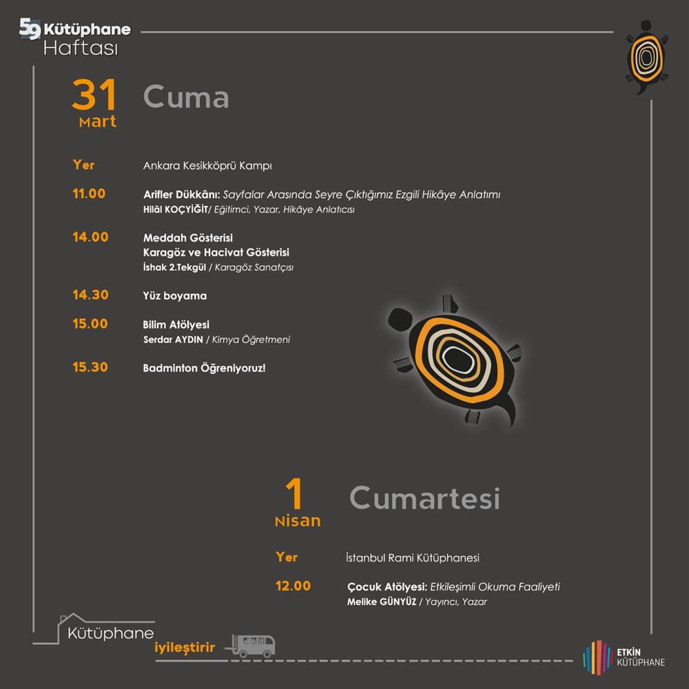 İstanbul Rami Kütüphanesi ile Ankara Adnan Ötüken İl Halk Kütüphanesi, Kesikköprü Kampı ve Millî Kütüphane ise depremzede gençlerle haftanın üçüncü gününden itibaren buluşacak.