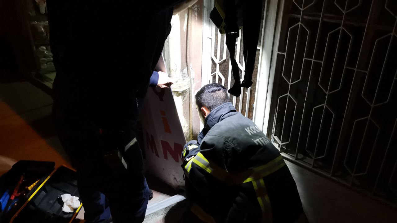 Alınan bilgiye göre, Hacı Halil Mahallesi 1201/1 Sokak'taki mağazanın tabelasının arasına sıkışan kedi yavrusunu gören işletmeci, durumu itfaiye ekiplerine bildirdi.