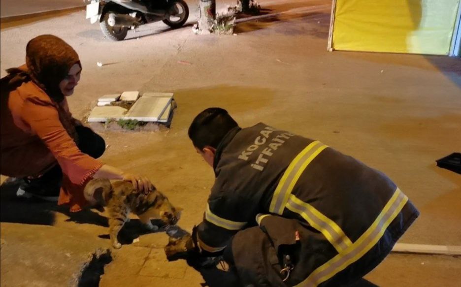 Ekiplerin çalışması sonucu hayvan, bulunduğu yerden çıkarıldı. Bu arada anne kedi, yavrusu kurtarılıncaya kadar başından ayrılmadı.