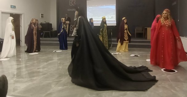 ‘ Kadın kıyafetlerinde; Anadolu’nun en az 4.000 yıllık geçmişi ile iç Asya’daki 2.000 yıllık özgür, geleneksel yaşamları, Anadolu’ya gelmeden önceki geçirdikleri kültürel, Şamanist geleneklerinin renk ve şekil-biçim olarak izlerine rastlamak mümkün. Hele İslamiyet, Hristiyanlık, Yahudilikle beraber gelen karşılıklı etkileşimler de izlenirse görsel ve biçimsel bir tarih anlayışıyla karşılaşırız.’ diyerek sözlerini ‘Biz de bu defilede bu farklı toplumsal yapıları Kadının her halinde görsel ve simgesel yanlarıyla sunmaya çalıştık. 9 ayrı anlam ve renkte ifade etmek istediğimiz geleneksel kadın giysi kültürümüzü sonraki defilelerde daha da çoğaltıp zenginleştirmeyi umuyoruz.’ tamamladı. Ay döngüleriyle özleştirilen kıyafetler görsel bir şölen eşliğinde renk ve motiflerin anlatılarak podyumda sergilendi. Her elbisenin yakın tarihimizde milli mücadelede yaptığı fedakarlıklarla kahraman kadınlara ithaf edildi. Halk Kürsüsü Dernek Başkanı Ramazan Sevinç duygularını ‘Türk kadınları yüzyıllar boyunca kıyafetleri ile her zaman zarafeti ve inceliği beraberinde yaşatmışlardır. Türk Kültüründe Kadın Tarih, medeniyet, kültür değerlerinin korunması ve geliştirilmesine yönelik faaliyetleri kapsayacak Giyim-Kuşam konusunda bu değerler için bir hafıza oluşturacak bu proje. Popüler kültüre kendimizi kaptırır da benliğimizden uzaklaşırsak milli değerlerimizde zamanla unutulup gider. Milli kültür değerlerini yitiren milletler de çok geçmeden tarih sahnesinden silinmeye mahkum olur. Tarihi ve kültürel mirasın korunması için yapılması gerekenler şu şekildedir: Kültür ve turizm faaliyetleri canlandırılmalıdır, Kültür ve turizm faaliyetleri arttırılmalı, Sosyal sorumluluk projeleri geliştirilmelidir, İnsanlar bilinçlendirilmelidir, Müzeler kurulmalıdır, Bununla ilgilenen kuruluşlar kurulmalıdır.’ Dedi. Şaman gösterisi ile devam eden programda projede emeği geçenlere teşekkür plaketi takdimiyle son buldu.