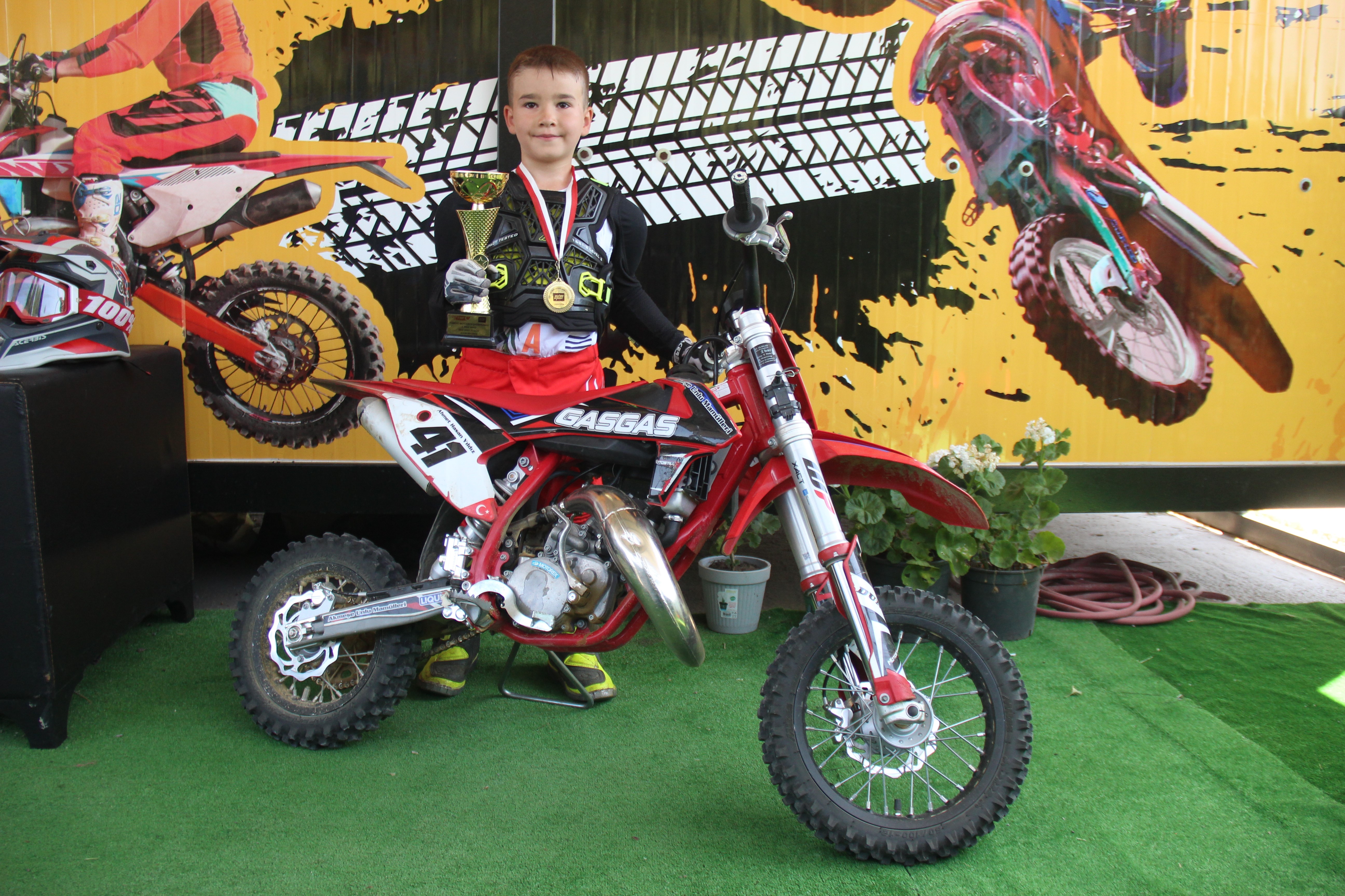 Motor binmeyi çok sevdiğini söyleyen Ahmet Hasan Yıldız, "4 yaşından beri motor sürüyorum. Balıkesir’de 50cc sınıfında ikinci oldum, çok güzel bir duyguydu. 22 çocuk benle yarıştı, derece aldığıma çok sevindim. Çok yorulmuştum ama yorulduğuma değdi. Babamın motora bindiğini görünce çok merak ettim ve ben de başladım. Büyüyene kadar devam etmek istiyorum. Dünya şampiyonu olmak istiyorum. Ailem ve arkadaşlarım beni çok destekliyor, onları üzmemek için kazanmaya çalışıyorum. İstanbul’da yarışım var, ona hazırlanıyorum. Günde 1-1.5 saat antrenman yapıyorum. Dünya şampiyonu olmak istiyorum" ifadelerini kullandı.