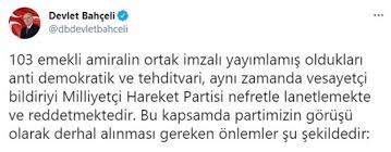 Ayrıca 103 vesayetçi amiralin imzasıyla yayımlanan bildirinin arkası ve önü kararlılıkla araştırılmalı, bu rezaletin içinde kimlerin olduğu tevsik ve tespit edilmelidir. Konu vatandır, konu demokrasidir, konu milli iradedir. Taviz veya gecikmenin bedeli hiç kuşkusuz ağır olacaktır."